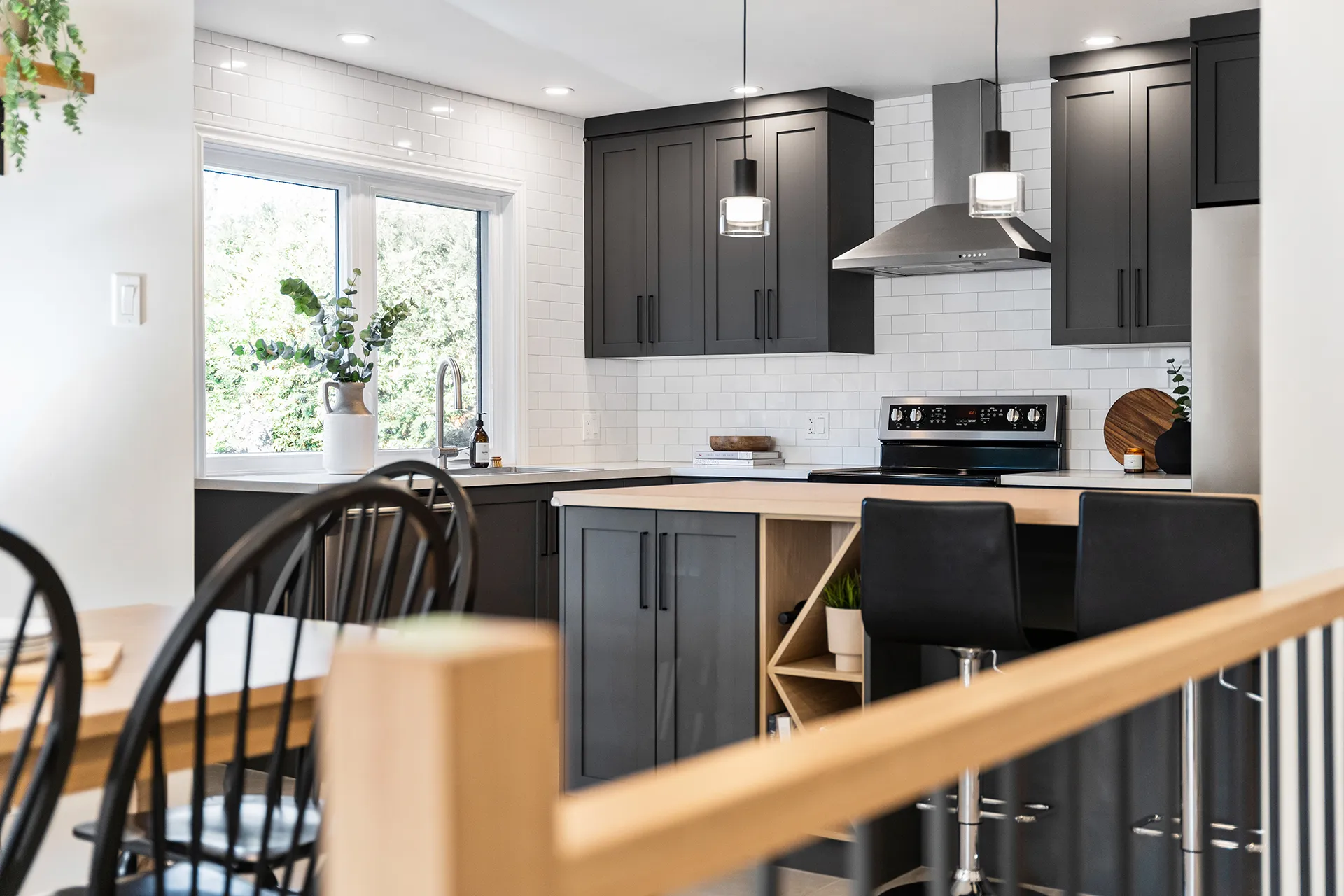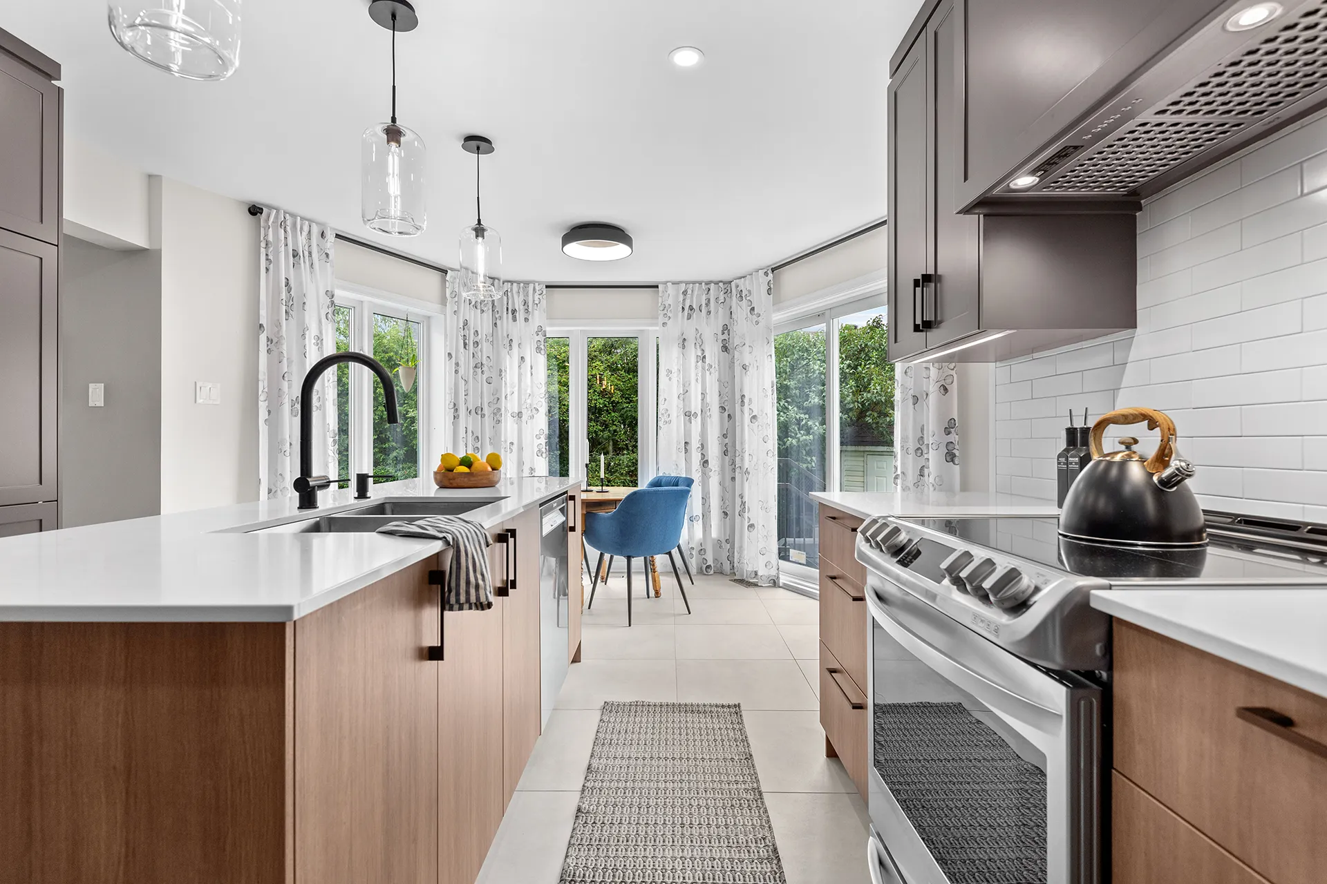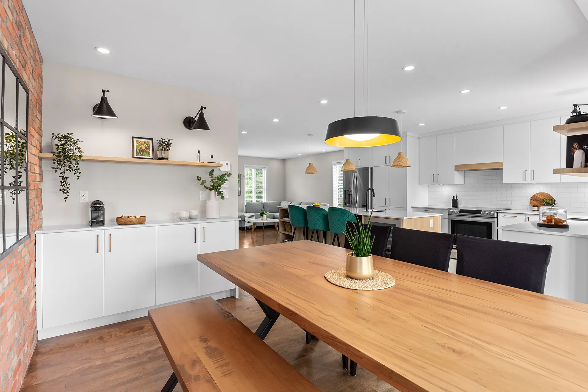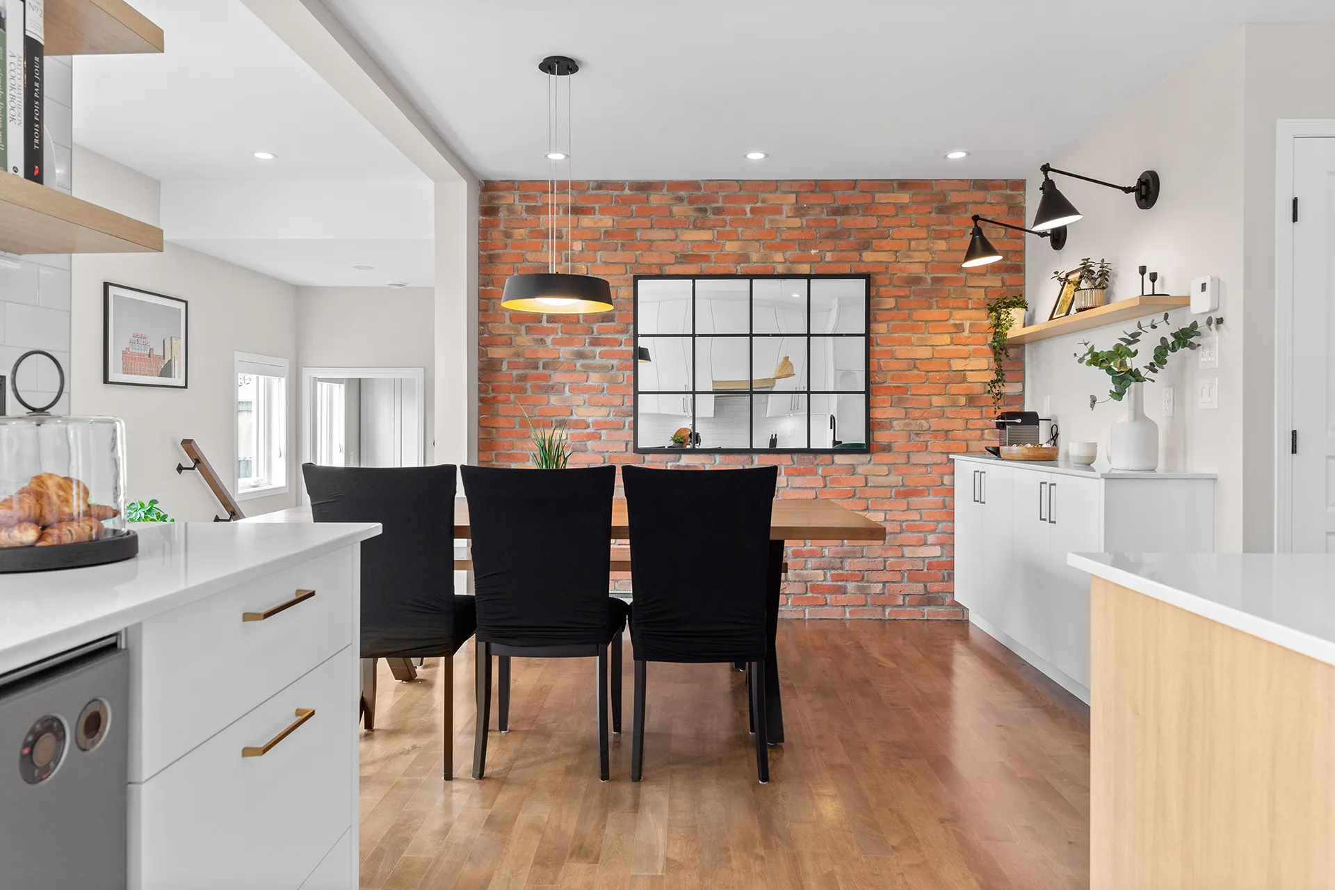 Rénovation d’une maison des années 50 avec une nouvelle configuration des espaces. La cuisine et la salle à manger ont été interchangées pour améliorer la circulation. Le couloir et l’accès aux chambres ont été repensés pour offrir plus d’insonorisation et d’intimité, et l’accès au sous-sol a été relocalisé et ouvert pour optimiser la fonctionnalité de la maison.