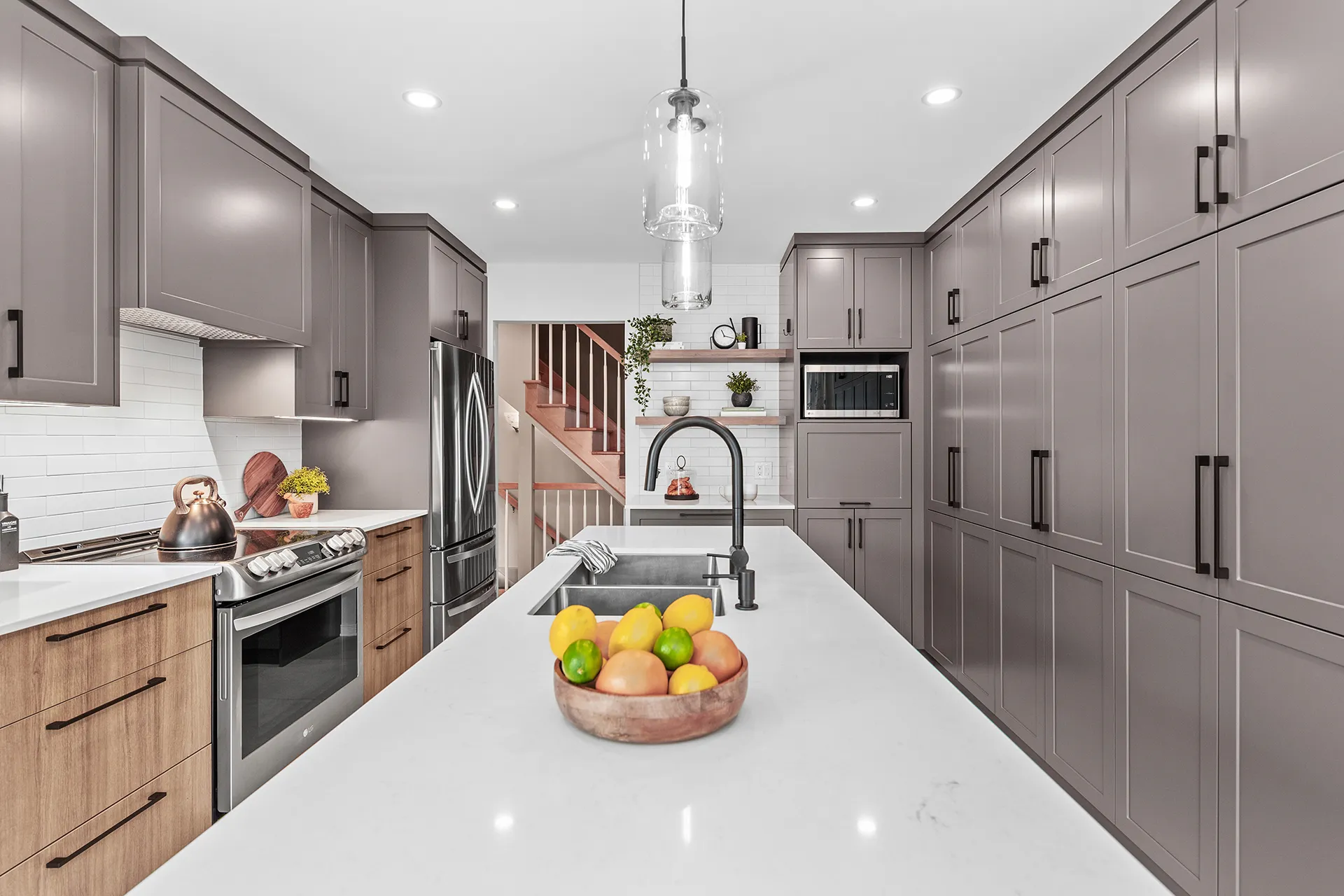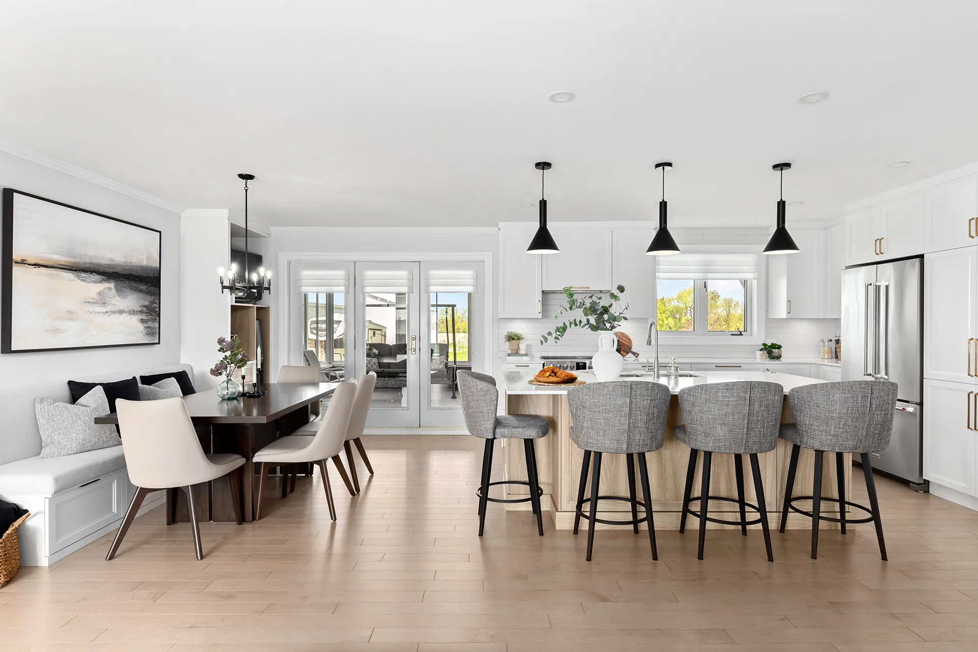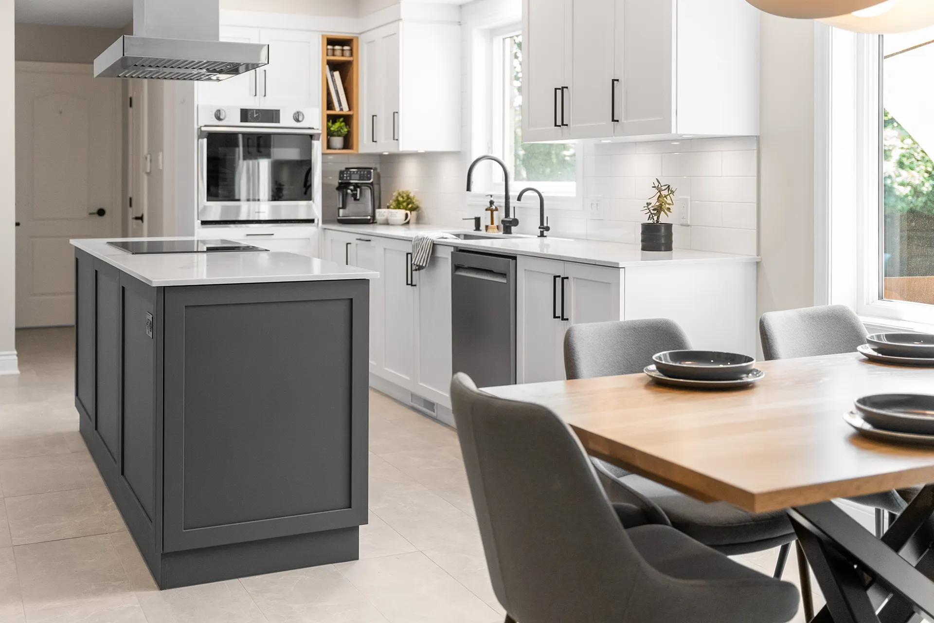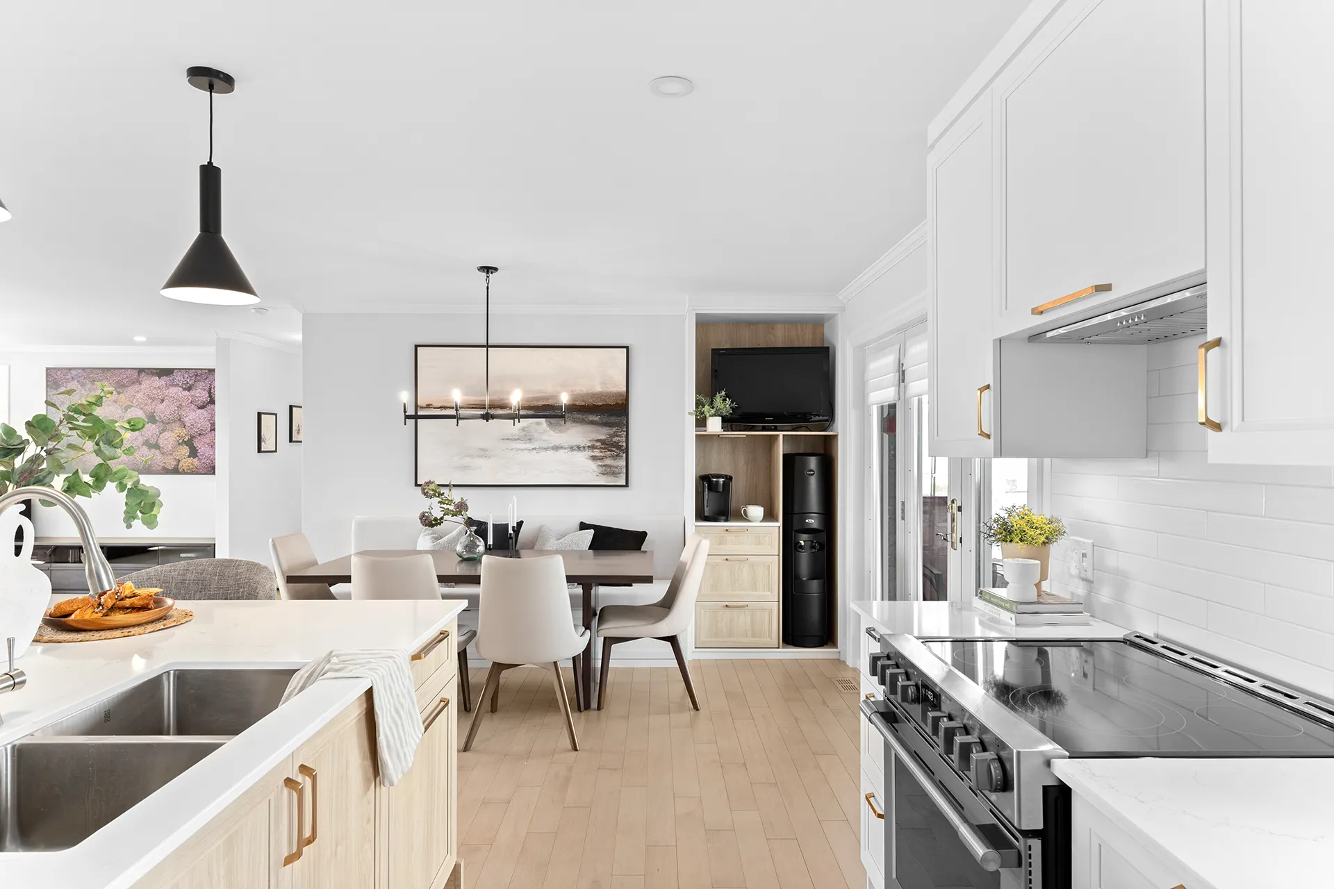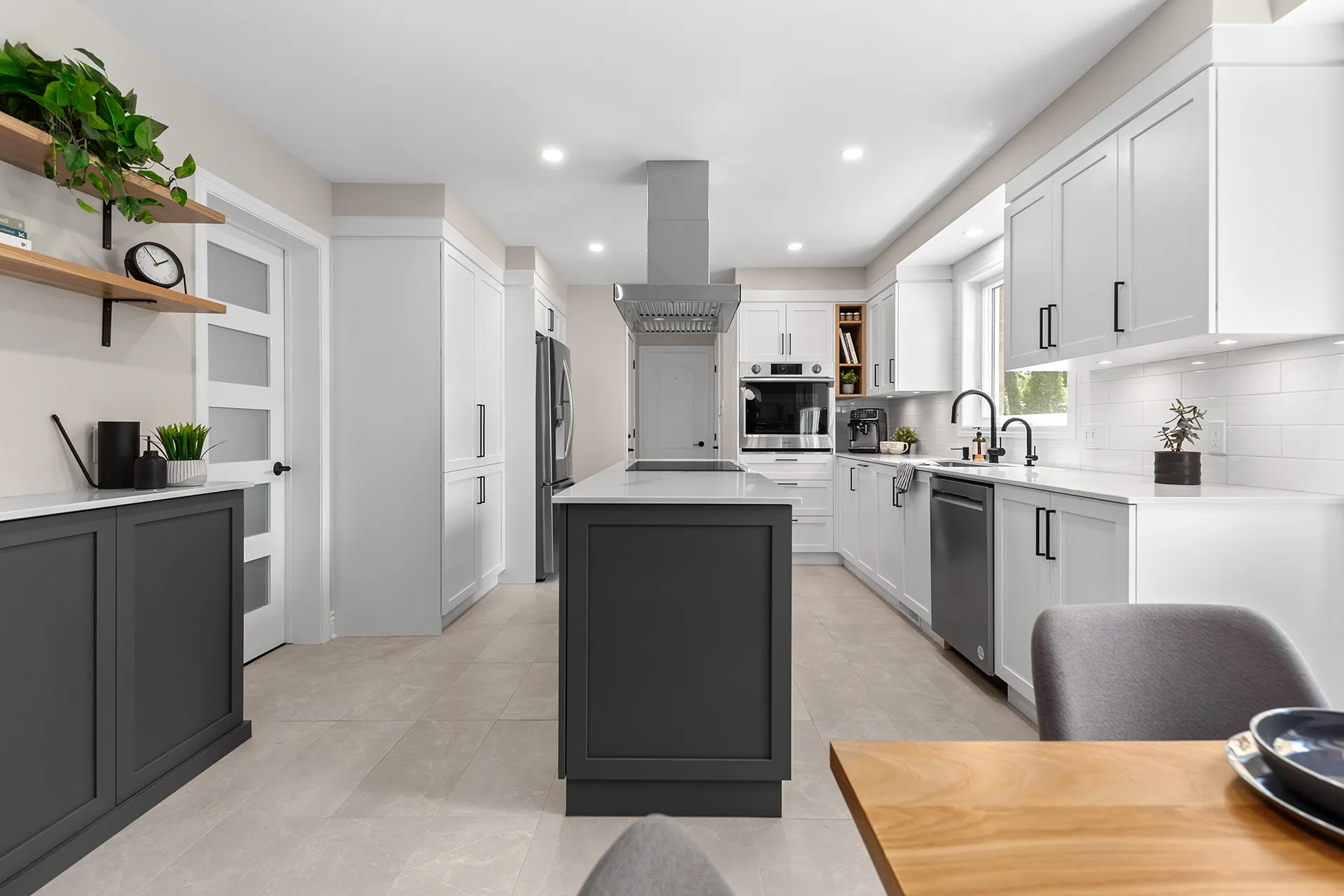 Rénovation d’une maison des années 50 avec une nouvelle configuration des espaces. La cuisine et la salle à manger ont été interchangées pour améliorer la circulation. Le couloir et l’accès aux chambres ont été repensés pour offrir plus d’insonorisation et d’intimité, et l’accès au sous-sol a été relocalisé et ouvert pour optimiser la fonctionnalité de la maison.