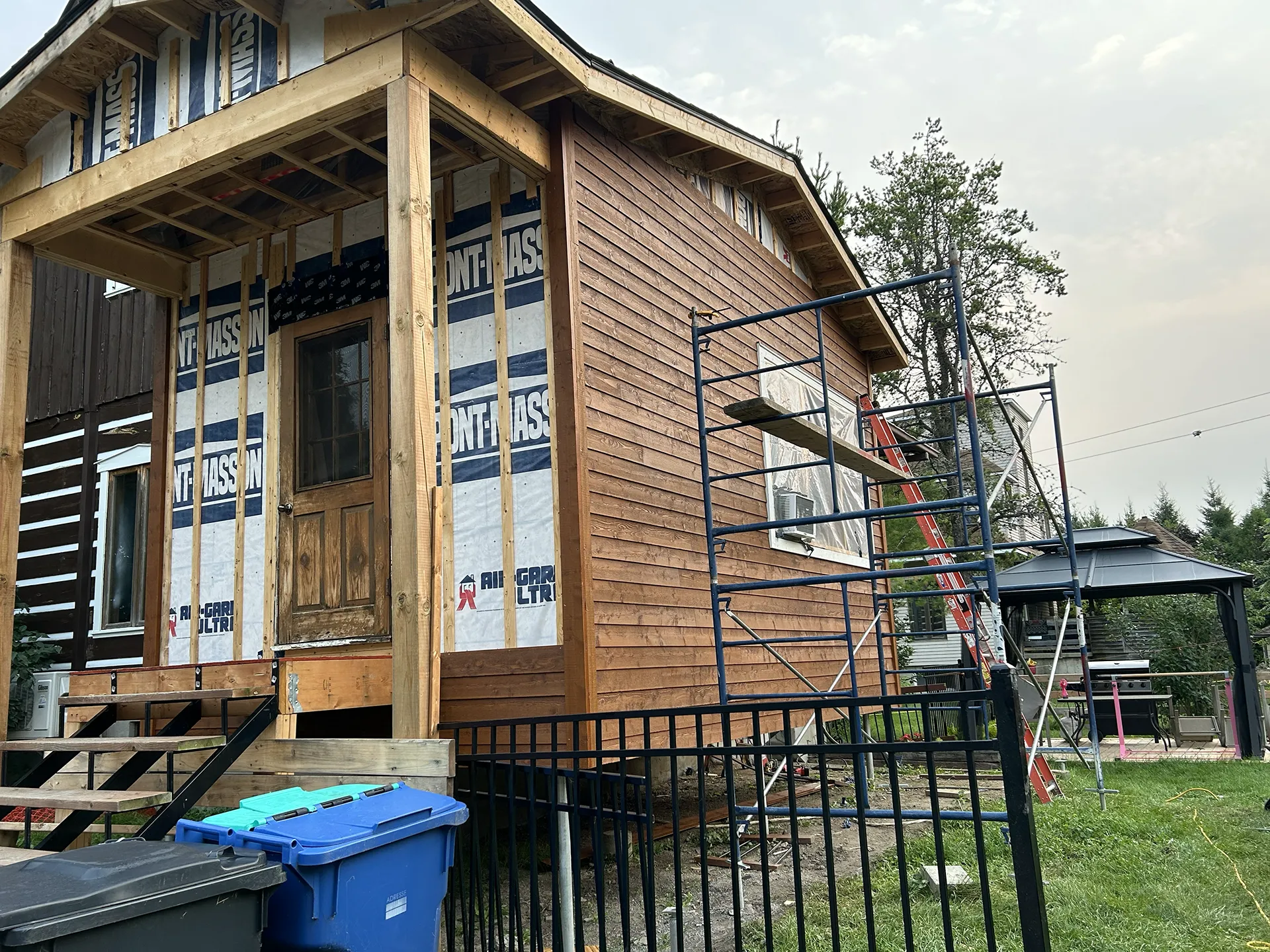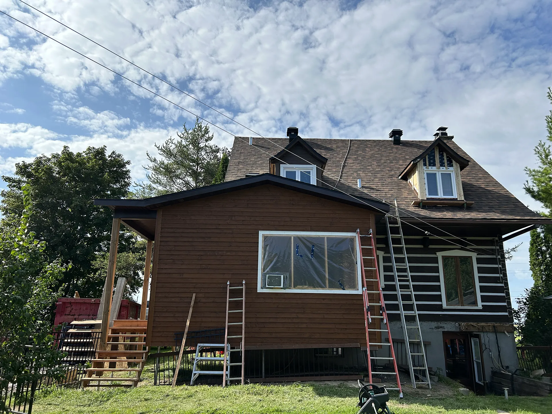 Projet d’agrandissement résidentiel : construction d’un garage entièrement neuf, parfaitement coordonné à la maison existante. Conçu pour maximiser l’espace et le rangement, ce garage sur mesure s’agence harmonieusement à l’architecture d’origine pour offrir une solution durable, fonctionnelle et esthétiquement cohérente.